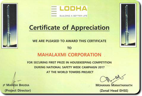 Mahalakshmi Corporation – Civil Contractor won 1st prize in “Housekeeping 2017’’