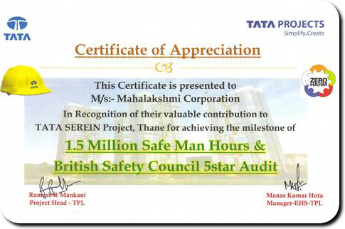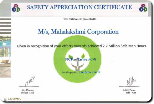Mahalakshmi Corporation won “Best Safety – 2016’’ award for the project ‘‘GCP World